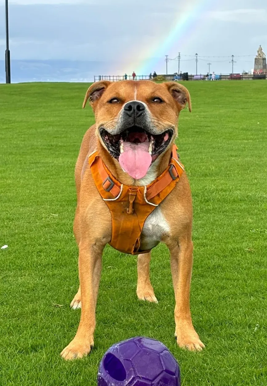 Nothing serious but just wee things that could make a nice peaceful walk a little stressful, like when heâd get overexcited and bound over to play with someone who was evidently horrified at seeing his big staffy face running at them.